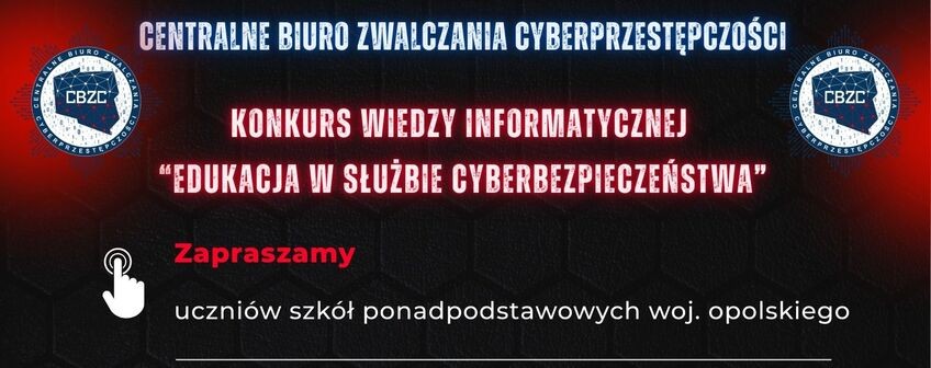 Nasi uczniowie Oliwer Fijał i Nikodem Palutek z Liceum Ogólnokształcącego oraz Krzysztof Sikora z Technikum Robotyki znaleźli się w gronie finalistów konkursu "Edukacja w służbie cyberbezpieczeństwa" organizowanym przez Policjantów Wydziału w Opolu Centralnego Biura Zwalczania Cyberprzestępczości.