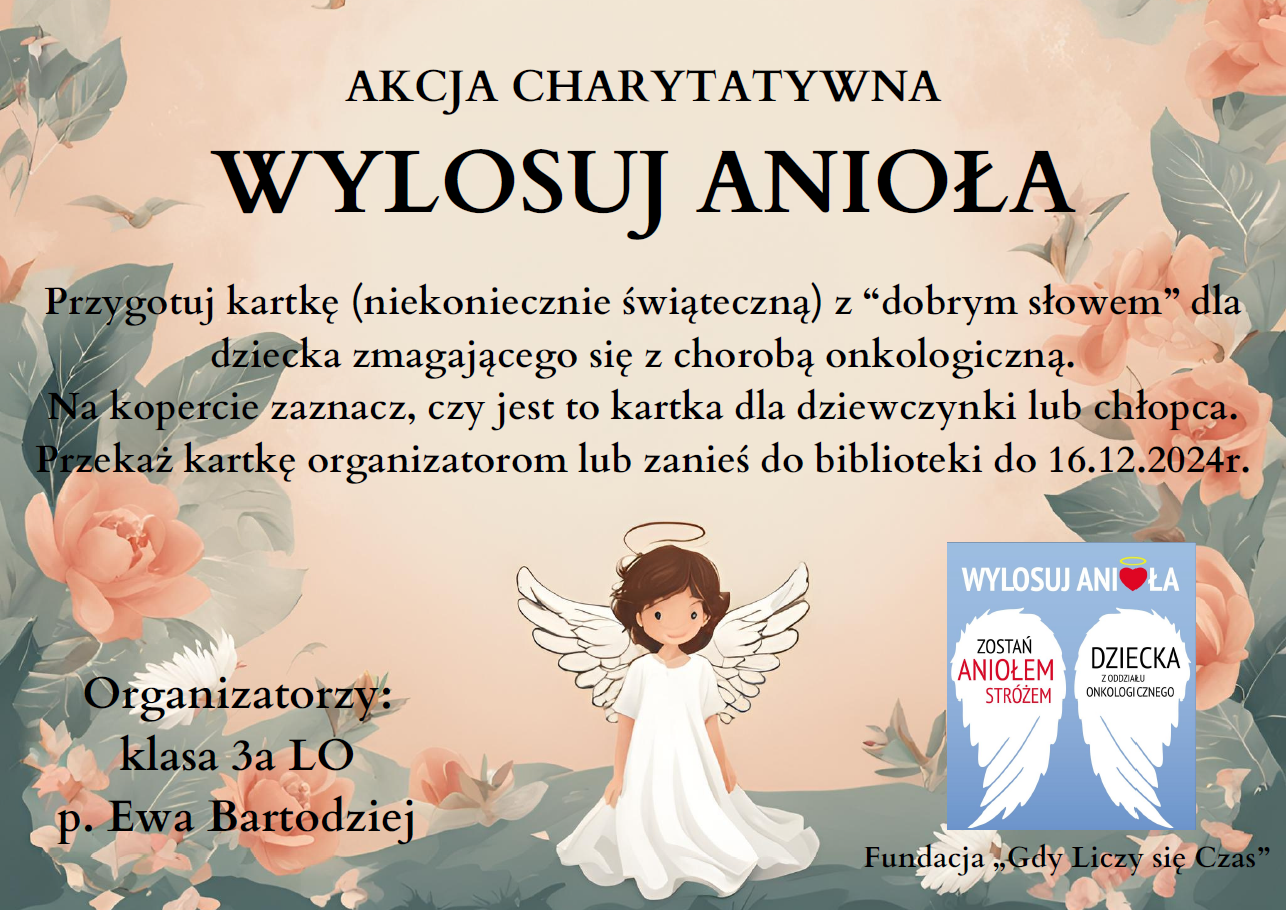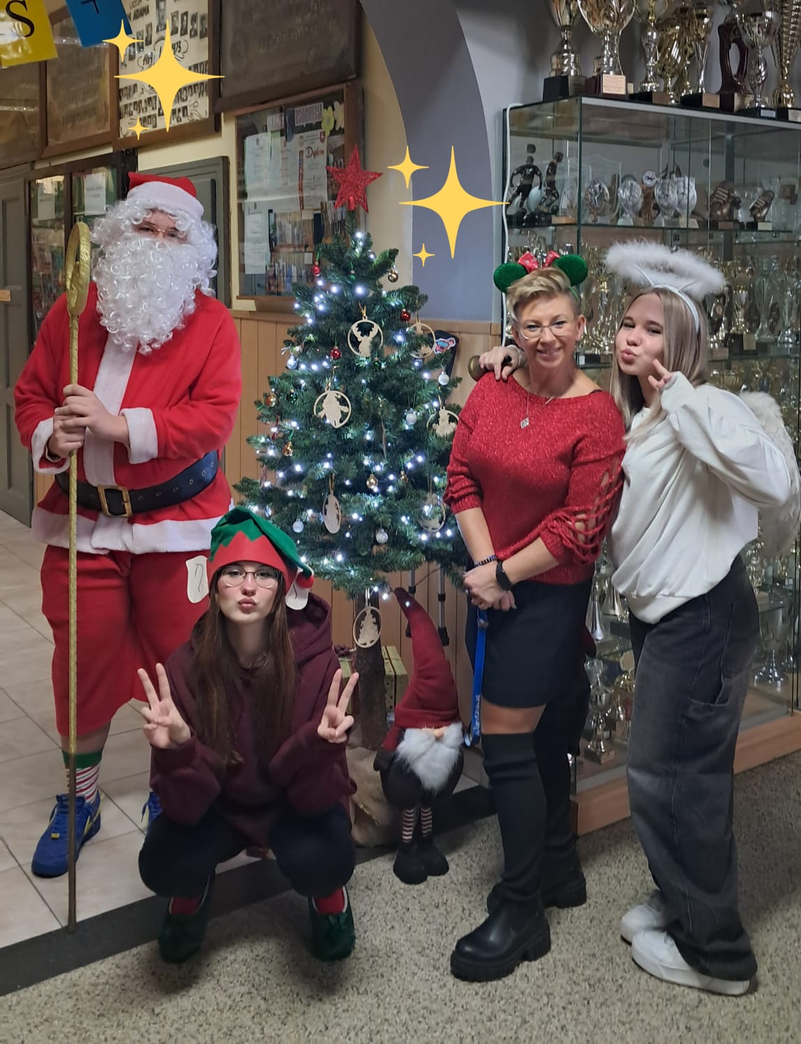 W dniu 6 grudnia szkolny Mikołaj z pomocnikami- elfem i aniołkiem złożyli drobne prezenty i życzenia pacjentom ZOL-u. Również nasi uczniowie zostali poczęstowani cukierkami przez Mikołaja. Następnie na sali gimnastycznej odbyły się grupowe tańce. Akcja pod hasłem " Zostań Świętym Mikołajem" to zbiórka pieniężna na poszkodowaną w wypadku kolejowym Iwonę Jelonek, naszą byłą uczennicę klasy mundurowej. Po godzinnej aktywności młodzież udała się na świąteczny film do DOKiS.