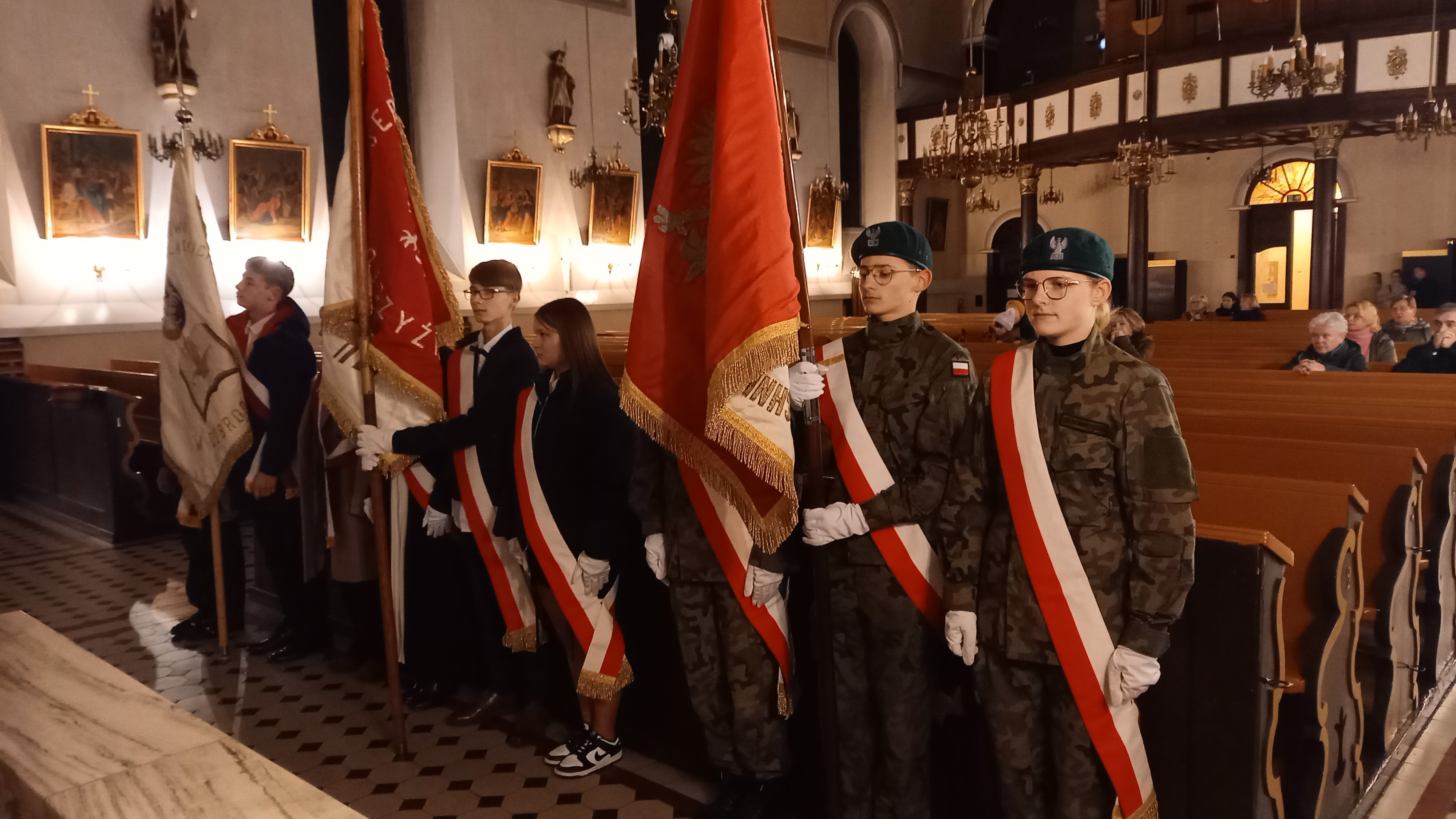 Z okazji Święta Niepodległości uczniowie Zespołu Szkól wraz z pocztami sztandarowymi wzięli również udział w uroczystej mszy św. dziękczynnej, która odbyła się w kościele parafialnym pw. Św. Marii Magdaleny w Dobrodzieniu.