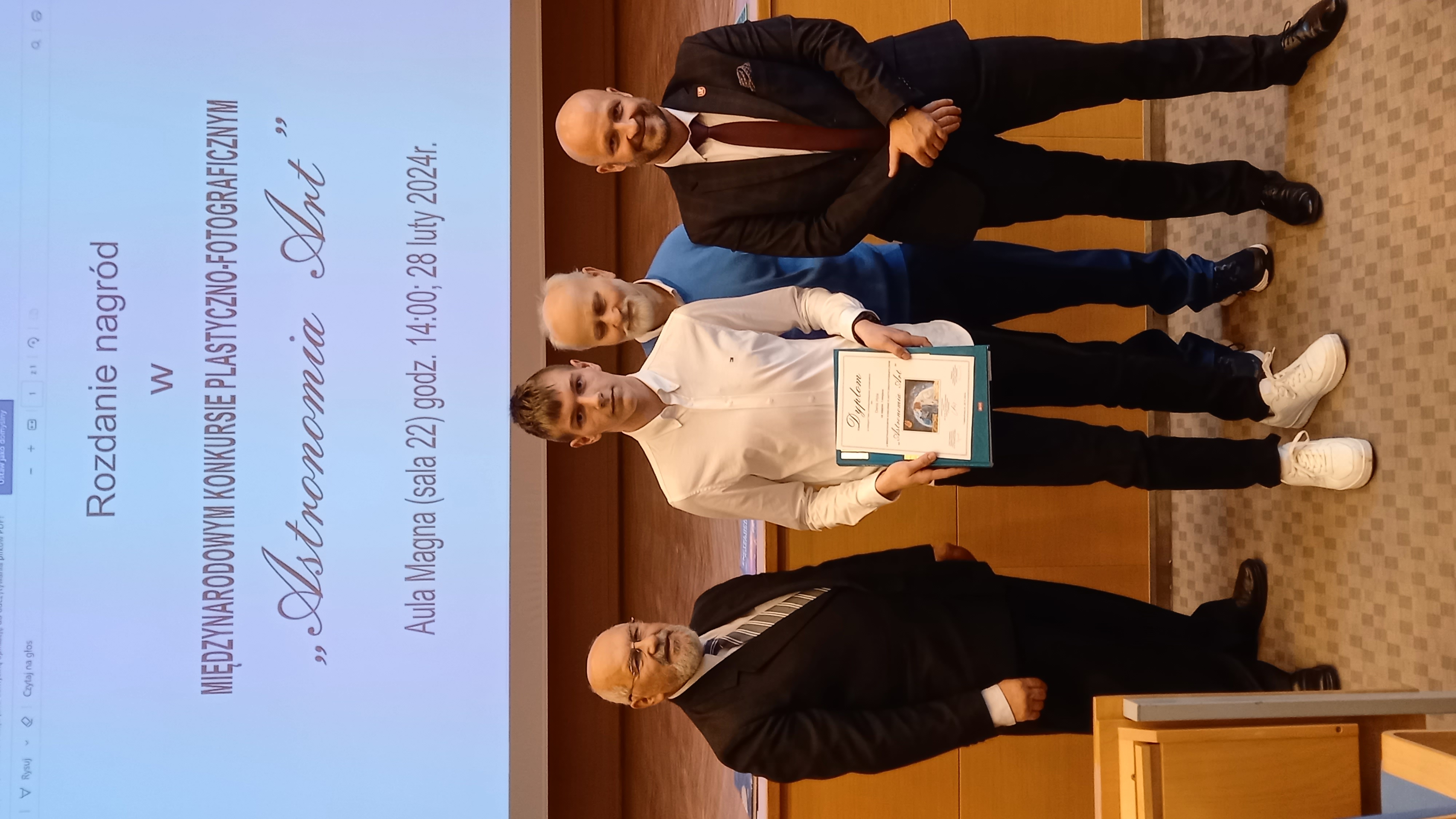 Uczeń klasy 2 b Liceum Ogólnokształcącego, Denis Hyla, wziął udział w uroczystości rozdania nagród Międzynarodowego Konkursu Plastyczno -Fotograficznego "Astronomia Art", zorganizowanego przez Wydział Nauk Ścisłych, Przyrodniczych i Technicznych Uniwersytetu Jana Długosza w Częstochowie.