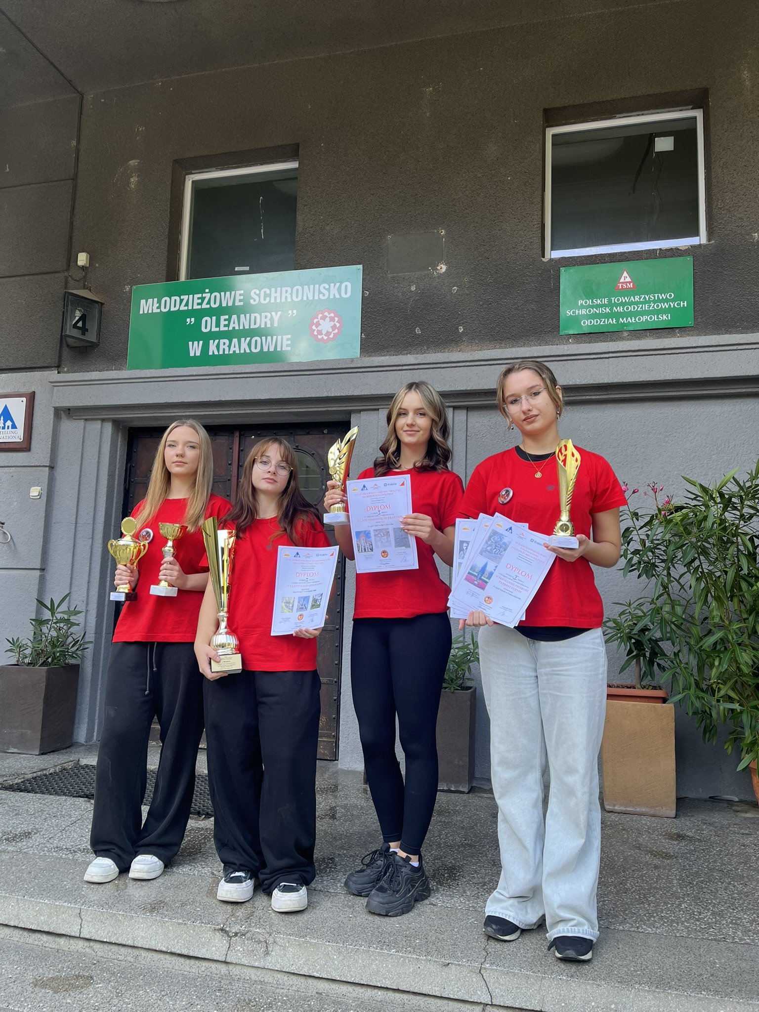 W dniach 25-28.09.2025 młodzież szkolnego koła PTSM (Polskie Towarzystwo Schronisk Młodzieżowych) wraz z opiekunkami p. Beatą Jasińską i p. Beatą Sikorą uczestniczyła w XLIX Ogólnopolskim Rajdzie Grunwaldzkim Młodzieży Szkolnej PTSM w Krakowie, odbywającym się pod honorowym patronatem Prezydenta Krakowa Aleksandra Miszalskiego. Rajd miał na celu poznanie walorów kulturowych Krakowa i okolic miasta. Upamiętnienie Grunwaldzkiej Wiktorii i pierwszej koronacji w dziejach Polski, wspomnienie postaci Tadeusza Kościuszki, Józefa Piłsudskiego i Olgi Boznańskiej, tradycja i współczesność PTSM; doskonalenie kompetencji estetycznych. Już po raz kolejny uczniowie naszej szkoły zmagali się w różnych konkurencjach z rówieśnikami z całego kraju. Jako pierwszy odbył się konkurs piosenki patriotycznej, w którym zajęliśmy I miejsce.