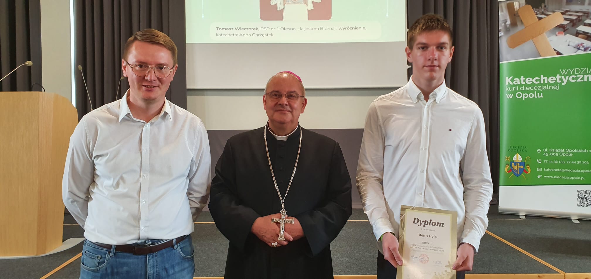 W piątek 06.06 w Opolu miała miejsce gala podsumowująca konkursy diecezjalne. Nasz uczeń Denis z klasy 3b LO zdobył 2 miejsce w Diecezjalnym Konkursie Artystycznym, który w tym roku przebiegał pod hasłem „Pielgrzymi nadziei. Rok jubileuszowy”. Serdecznie gratulujemy i życzymy dalszych sukcesów.