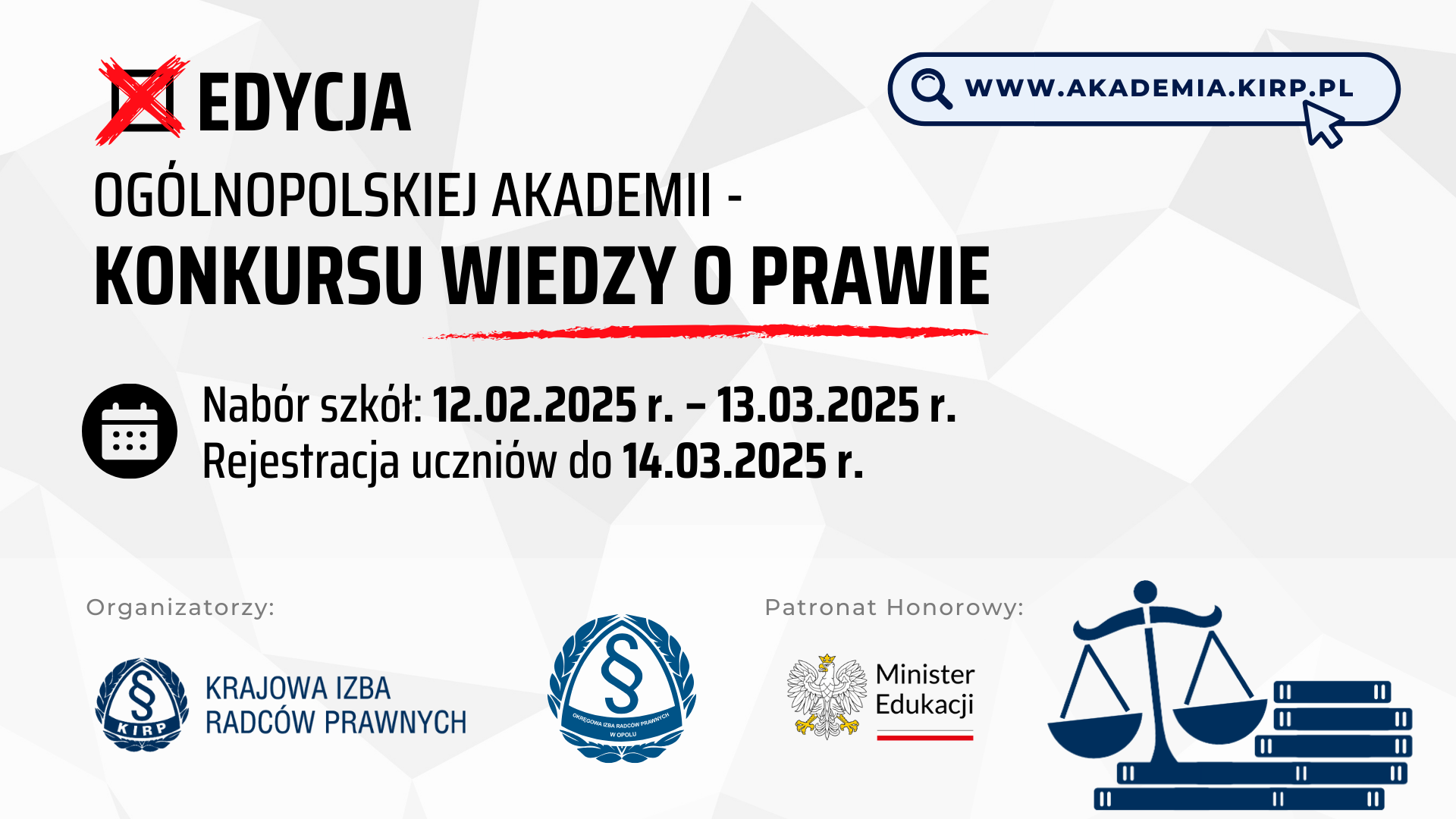Okręgowa Izba Radców Prawnych w Opolu zaprasza do udziału w X edycji Ogólnopolskiej Akademii – Konkursu Wiedzy o Prawie!