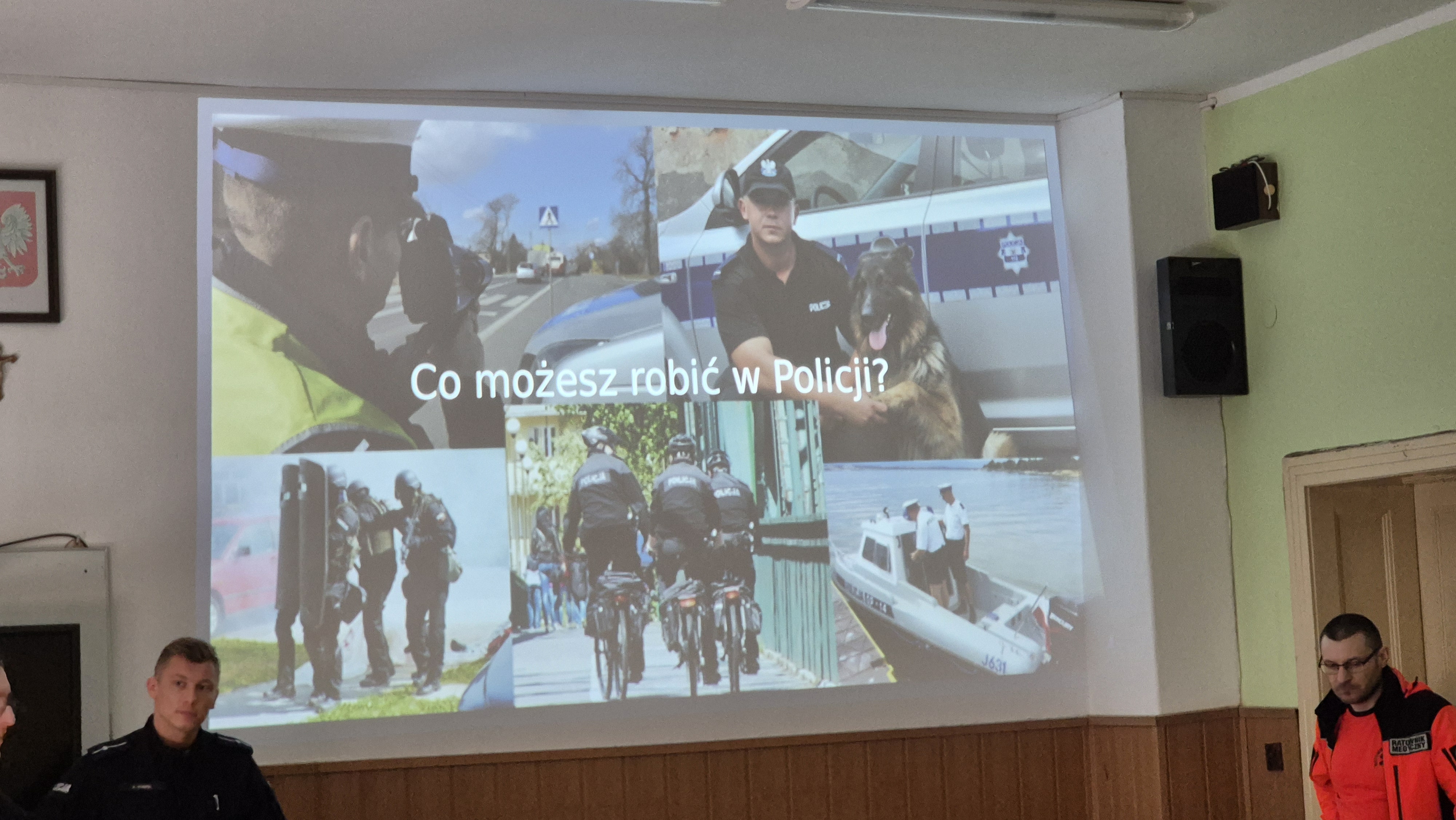 Nasi uczniowie dowiedzieli się jakie są wymogi dla kandydata do Policji, jakie są zarobki, nagrody i przywileje oraz dlaczego warto zostać właśnie policjantem.